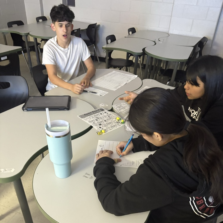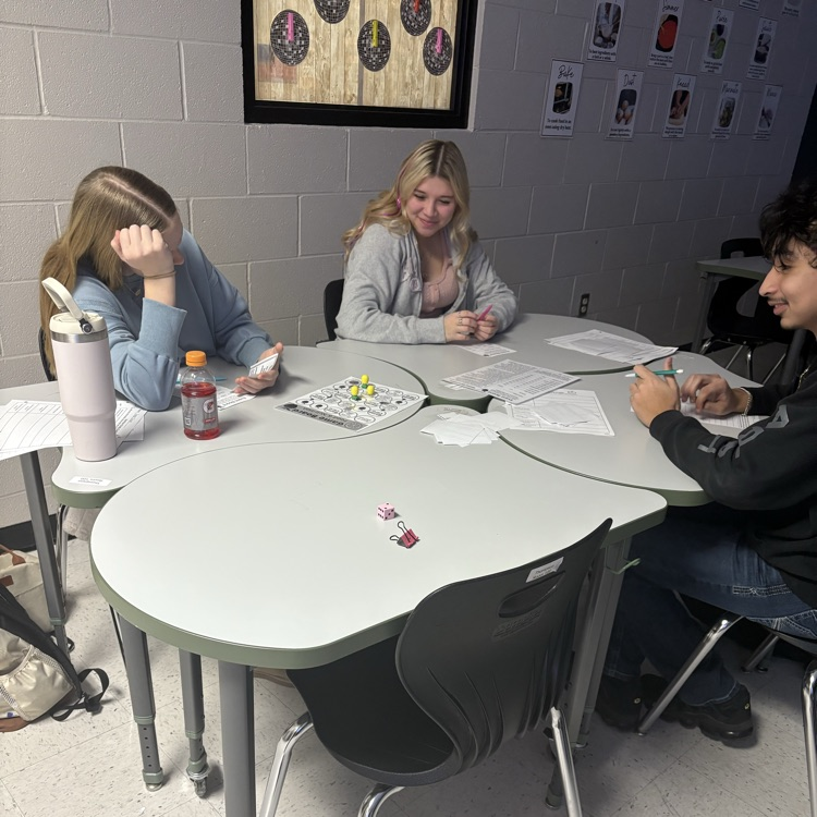 Ms. Thompson's Introduction to Culinary class playing a nutrition board game to test their knowledge on a healthy diet to prepare themselves for their unit test.